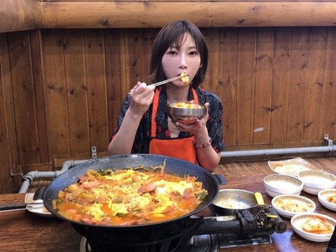 韓国を訪れたユーチューバーの木下ゆうかが議政府でプデチゲ4人分を食べている様子。(写真提供=木下ゆうか)