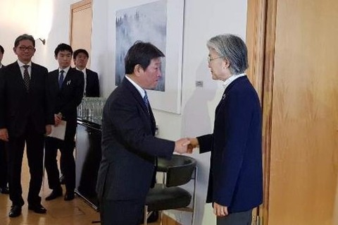 康氏と茂木氏は強制徴用訴訟問題でそれぞれの政府の立場を主張した。一方、新型コロナウイルスへの対応に関して、両国間の情報共有が円滑に行われるよう協力することで一致した。