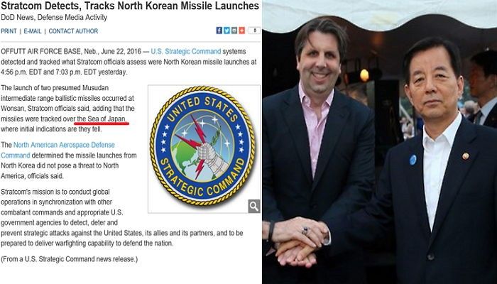 今月22日(現地時間)、米国防総省が戦略司令部(Stratcom)名義で発表した北朝鮮ムスダンミサイル発射関連公式報道資料に'東海(East Sea)'ではなく'日本海(Sea of Japan)'と単独表記した。