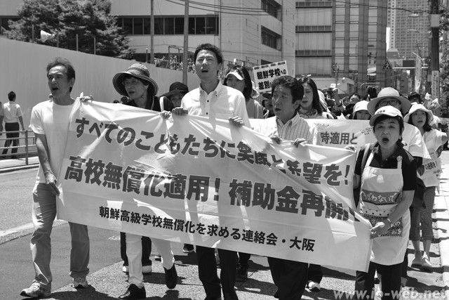 「朝鮮高級学校無償化を求める連絡会・大阪」(以下、「無償化連絡会・大阪」)が主管する、大阪府庁前での「火曜日行動」が6月21日に200回目を迎えた。この日、節目の200回に際して参加者たちによるデモ行進が行われた。