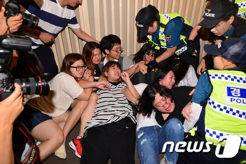 韓国の大学生、慰安婦支援財団の発足記者会見場に乱入・奇襲デモ