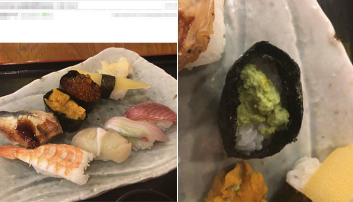公開された写真の中には外から見れば完全に見えるスシがある。しかし、もう一枚の写真ではウニの卵のスシの上の部分を取り除くとすぐに隠されていた多量のワサビがあらわれた。A氏は「知人が日本語が基礎水準なので対応できなかった」として「食べ物にいたずらをすることにとても腹が立つ」とくやしい心情が込められた文を付け加えた。
