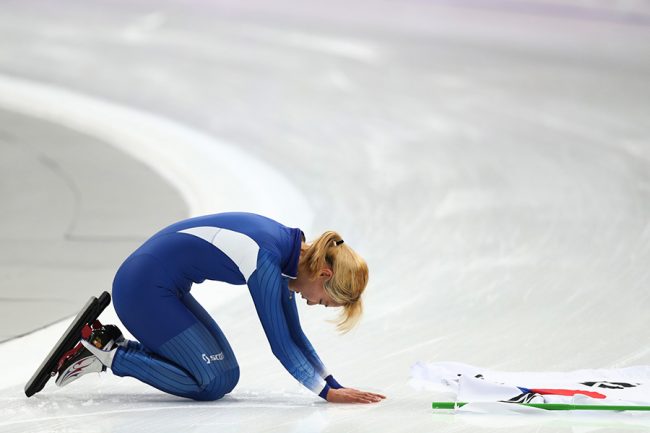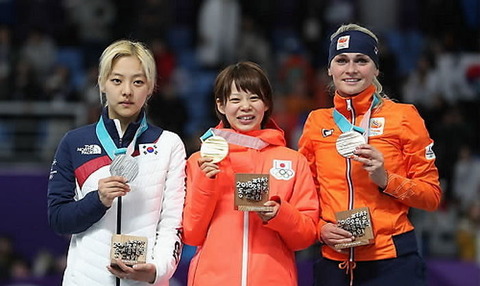 事件はまさに24日のスピードスケート女子マススタートのメダル授与式中に起こった。