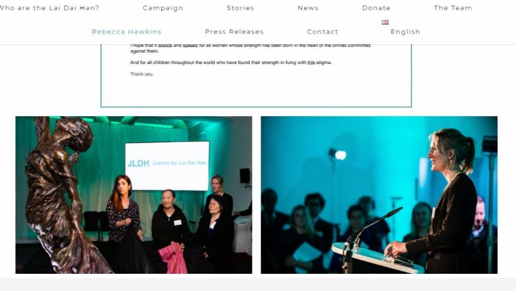 お披露目されたライダイハン像と制作者を紹介する英の民間団体「ライダイハンのための正義」ホームページより