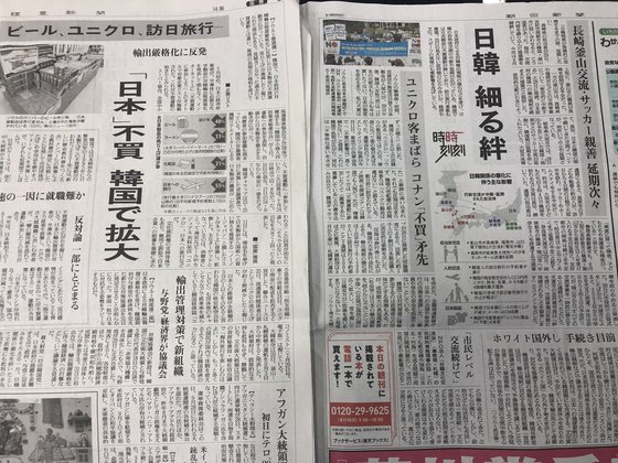 読売新聞も同日、韓国内の不買運動拡散の記事を国際面に大きく掲載した。