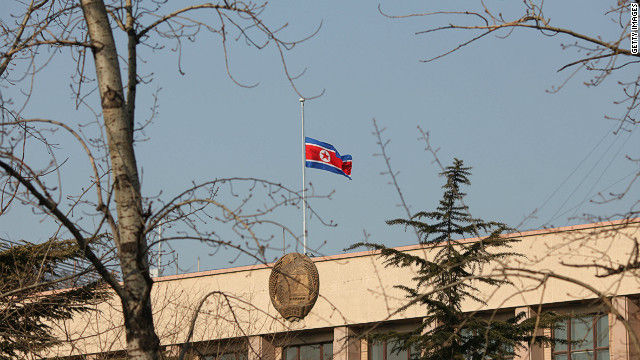 画像:北京の北朝鮮大使館は半旗を掲げた(19日)