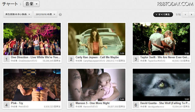 この新たな仕組みが導入されると、いきなりYouTube上の音楽動画ランキング上に異変が起きた。